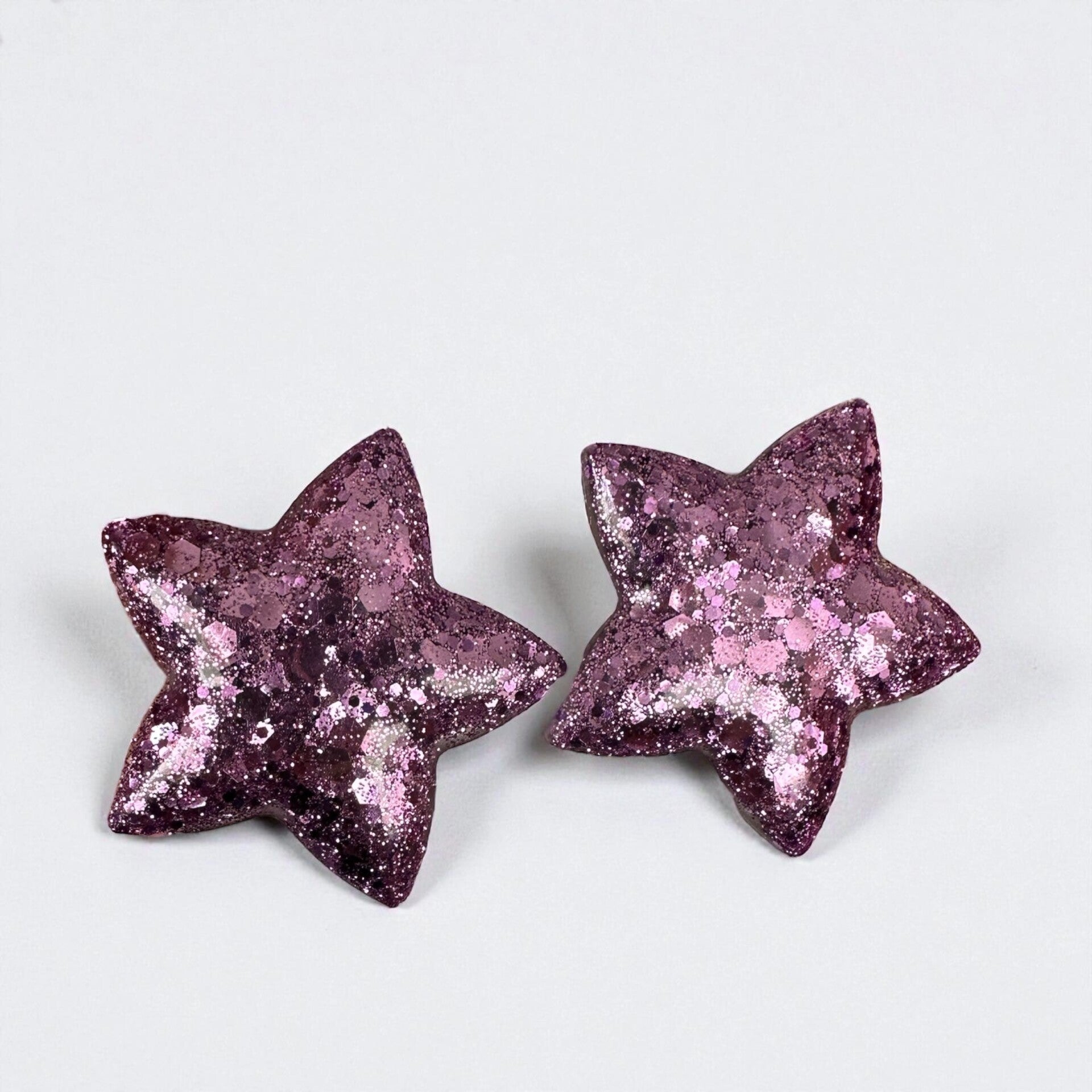 Boucles d'oreilles faites à la main, en résine époxy, avec des apparats en acier inoxydable.