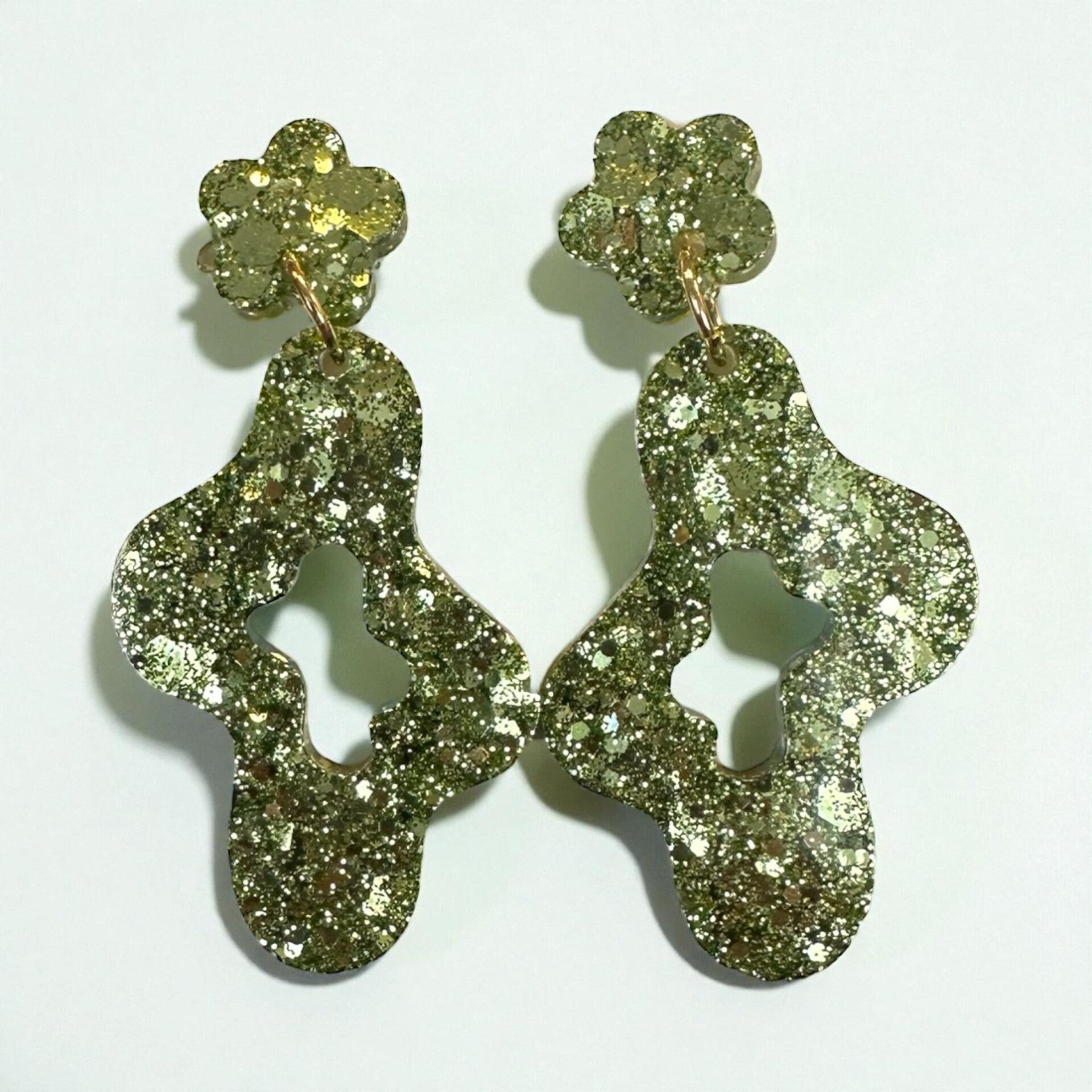 Boucles d'oreilles faites à la main, en résine époxy, avec des apparats en plaqué or.