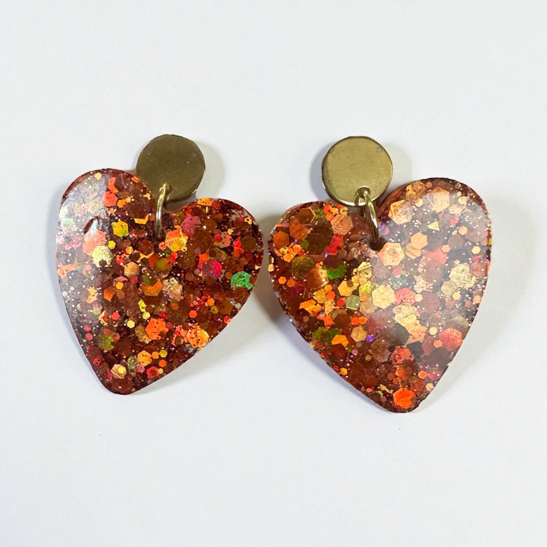 Boucles d'oreilles faites à la main, en résine époxy, avec des apparats en acier inoxydable.