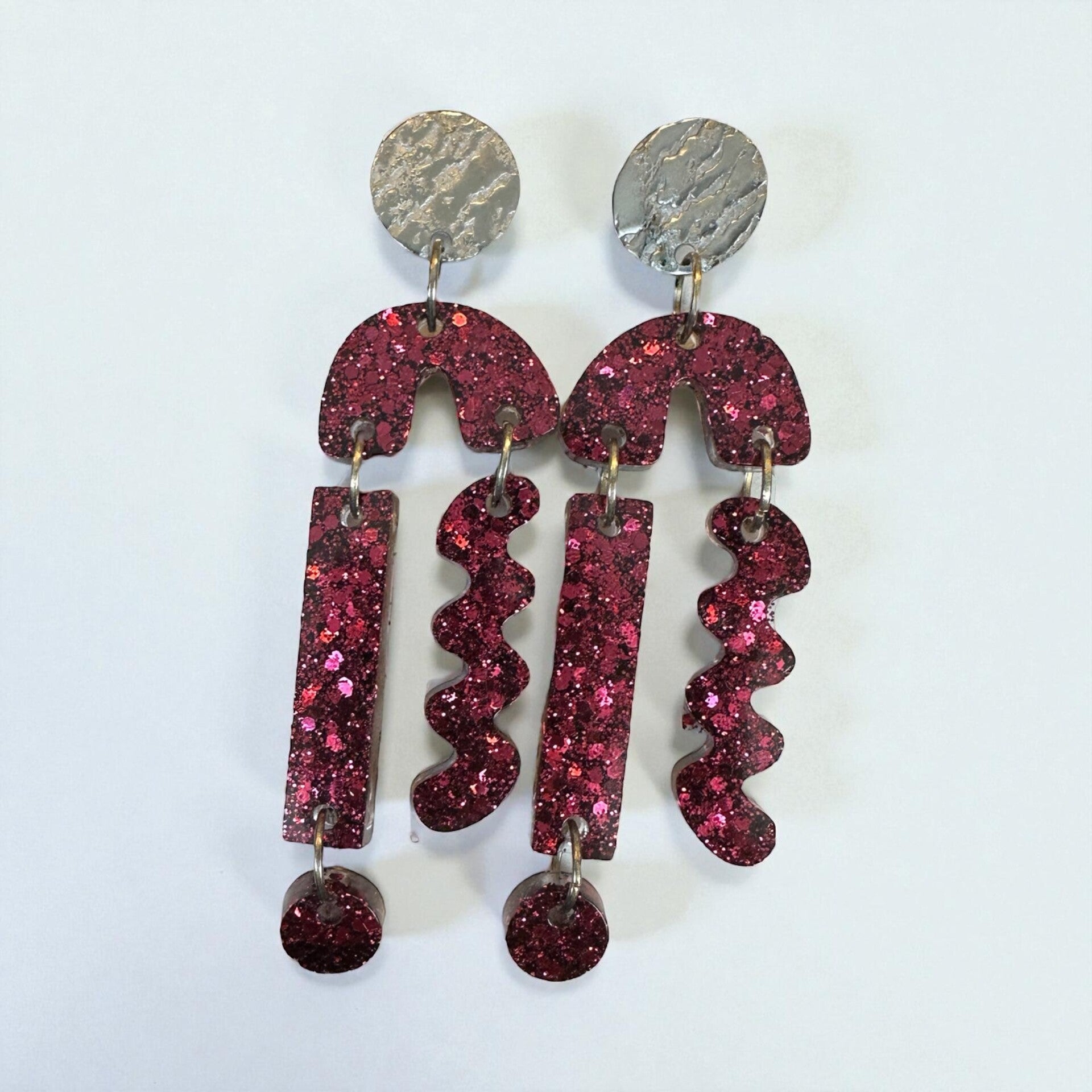 Boucles d'oreilles faites à la main, en résine époxy, avec des apparats en acier inoxydable.