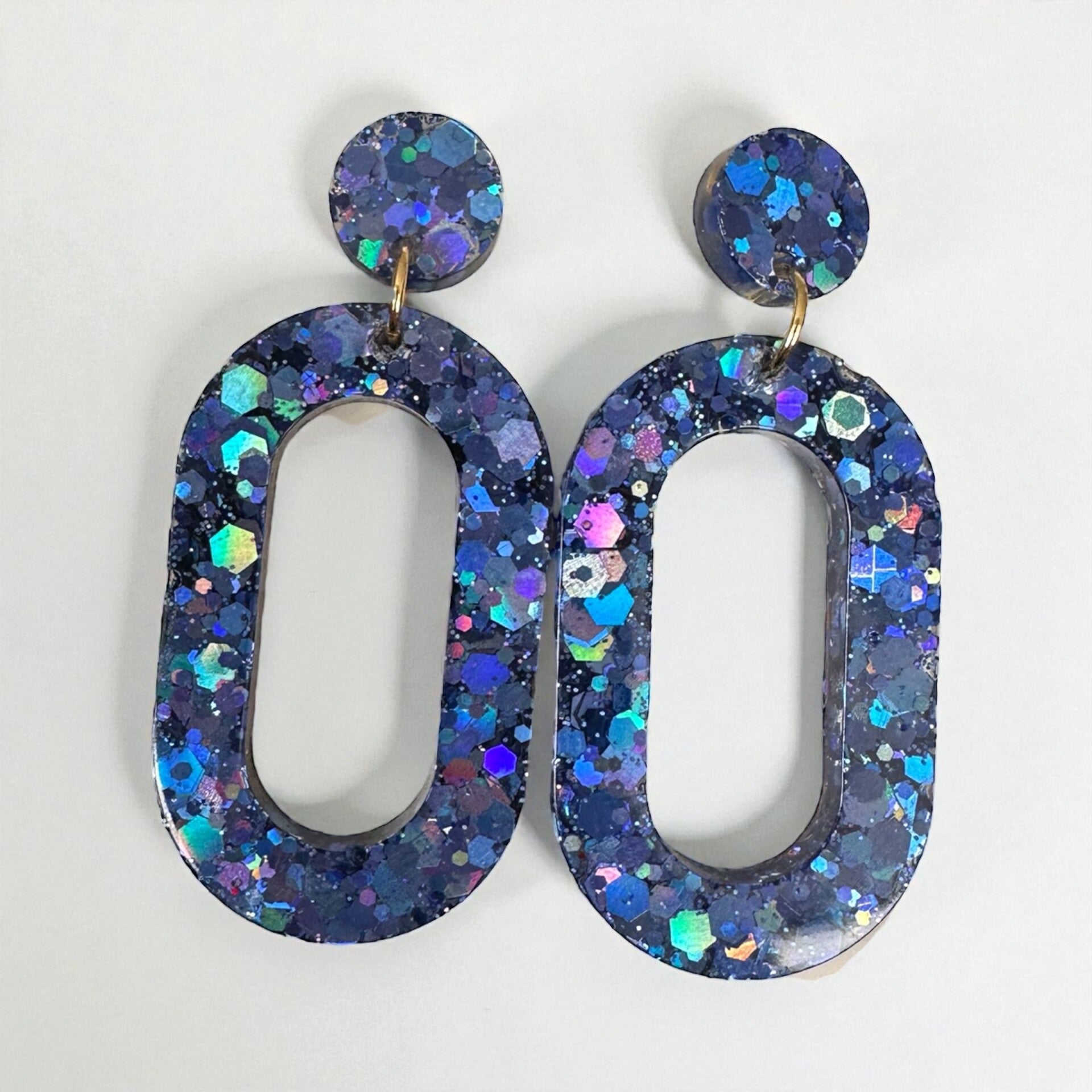 Boucles d'oreilles faites à la main, en résine époxy, avec des apparats en plaqué or.