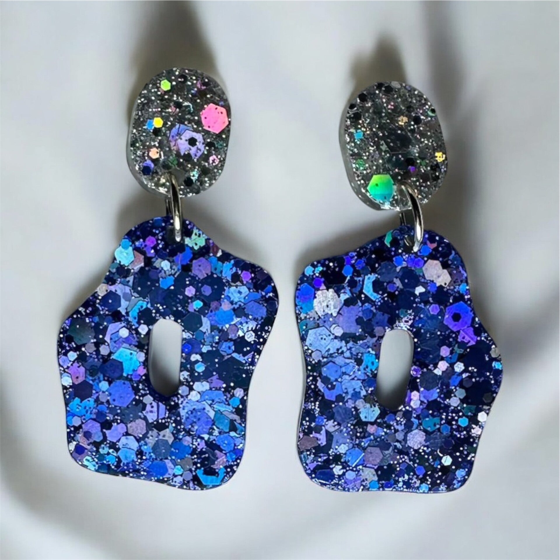 Boucles d'oreilles faites à la main, en résine époxy, avec des apparats en plaqué or.